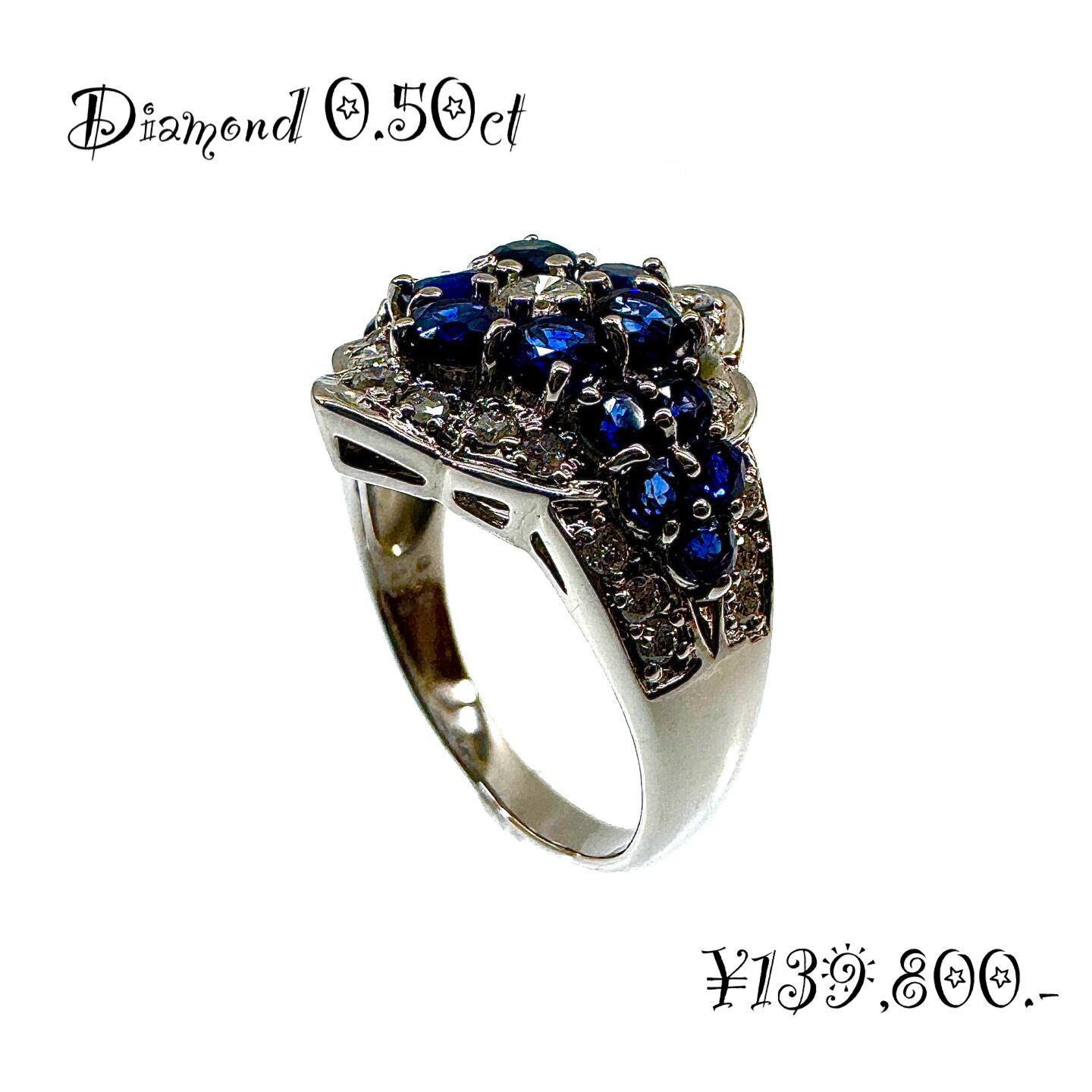 さらに、ダイヤモンドは総計0.50カラットを使用。メレダイヤをバランスよく配し、サファイアの輝きを一層引き立てています。