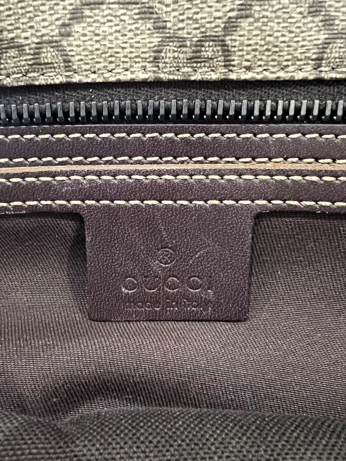 軽量で耐久性に優れたコーティングキャンバス素材に、ブランドの象徴であるGGパターンが全体に施されたデザイン。落ち着いたベージュ×ブラウンの配色が上品で、ビジネスからデイリーまで幅広く活躍します。