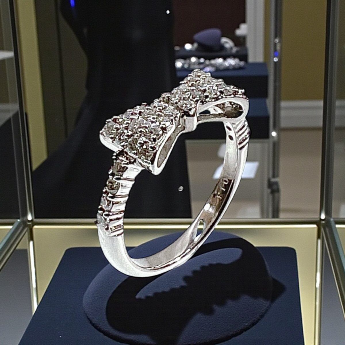 上品な輝きと愛らしさを兼ね備えた、Pt900天然ダイヤモンド リボンモチーフリングです。