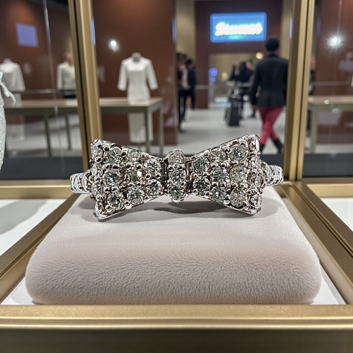 きらめくダイヤモンドをふんだんに使用した立体的なリボンデザインが、手元を華やかに彩ります。