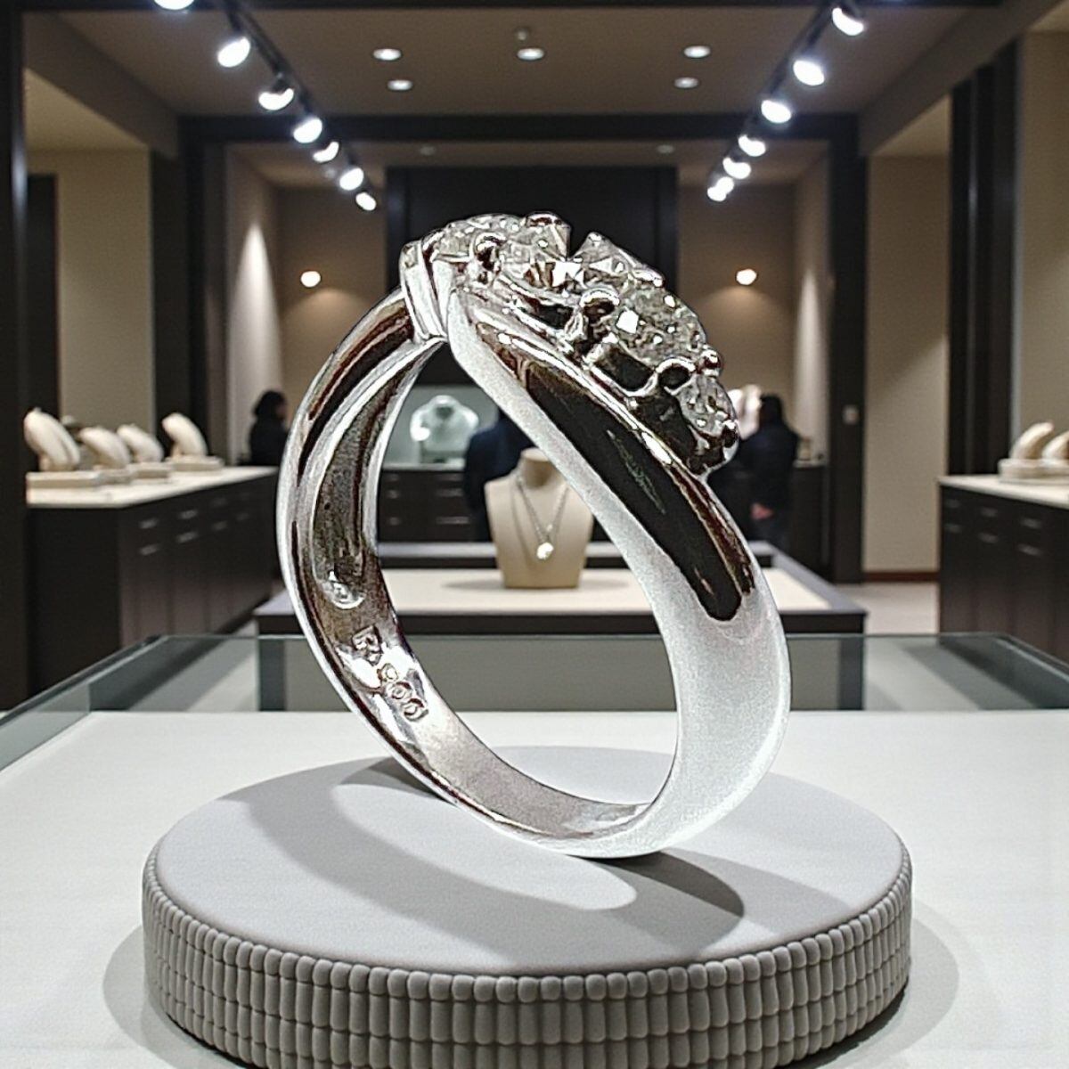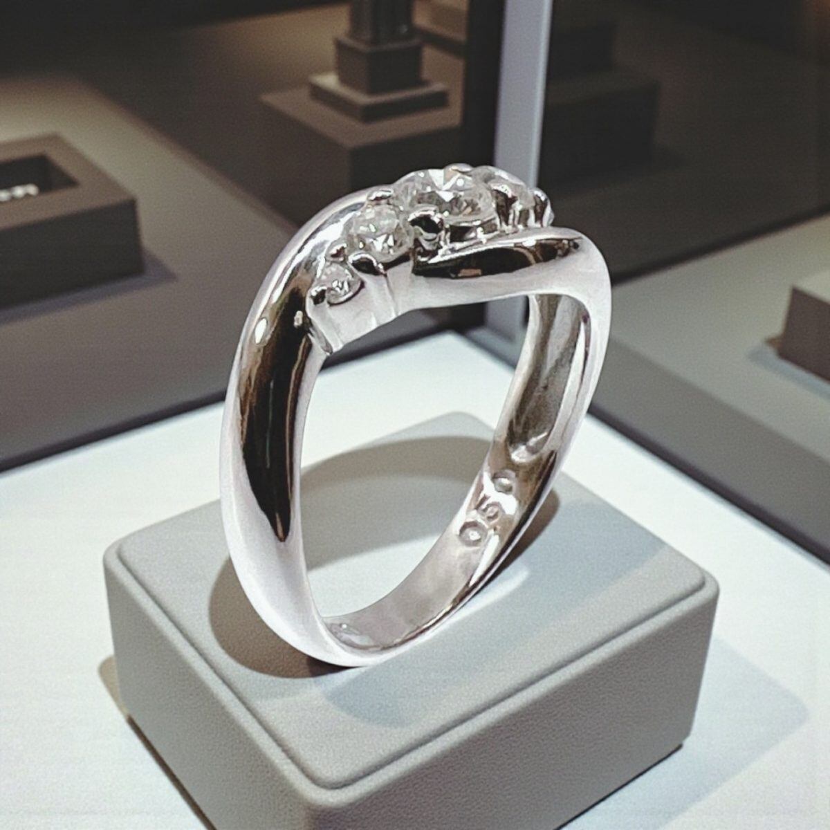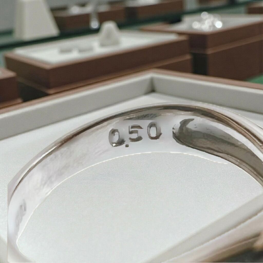 リング内側には「Pt900」「0.50」の刻印があり、素材とカラットの確かな品質を証明しています。