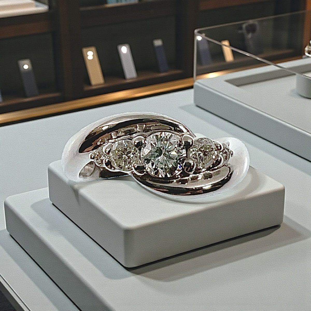 プラチナ特有の重厚感と明るい艶が、ダイヤモンドの煌めきをより一層引き立て、洗練された高級感を感じさせます。