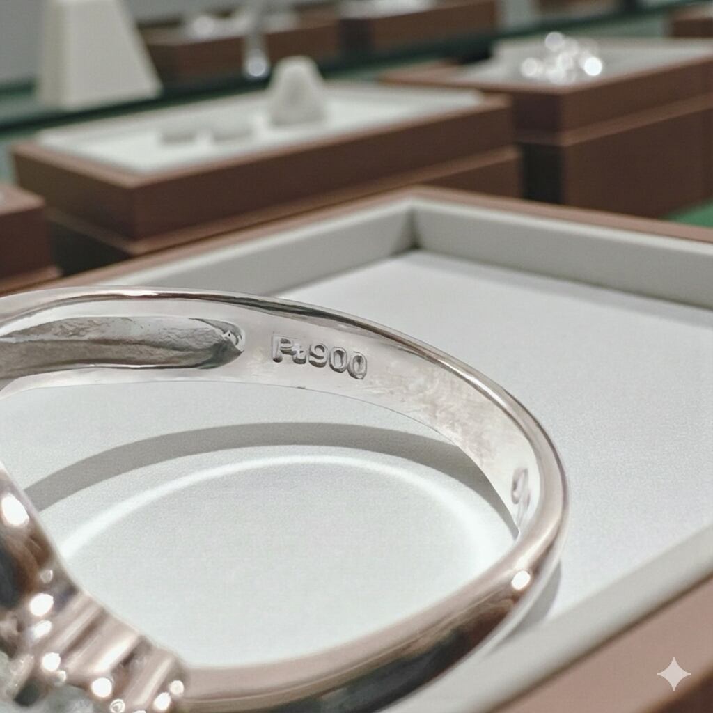 素材には耐久性と純度の高さで知られるPt900(プラチナ900)を使用。変色や変質に強く、長く美しい輝きを保ちます。