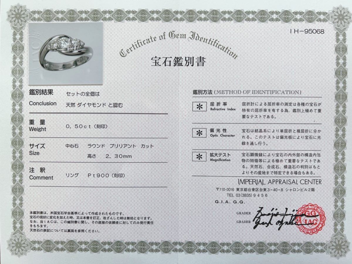 また、本品にはIMPERIAL APPRAISAL CENTER発行の宝石鑑別書が付属。